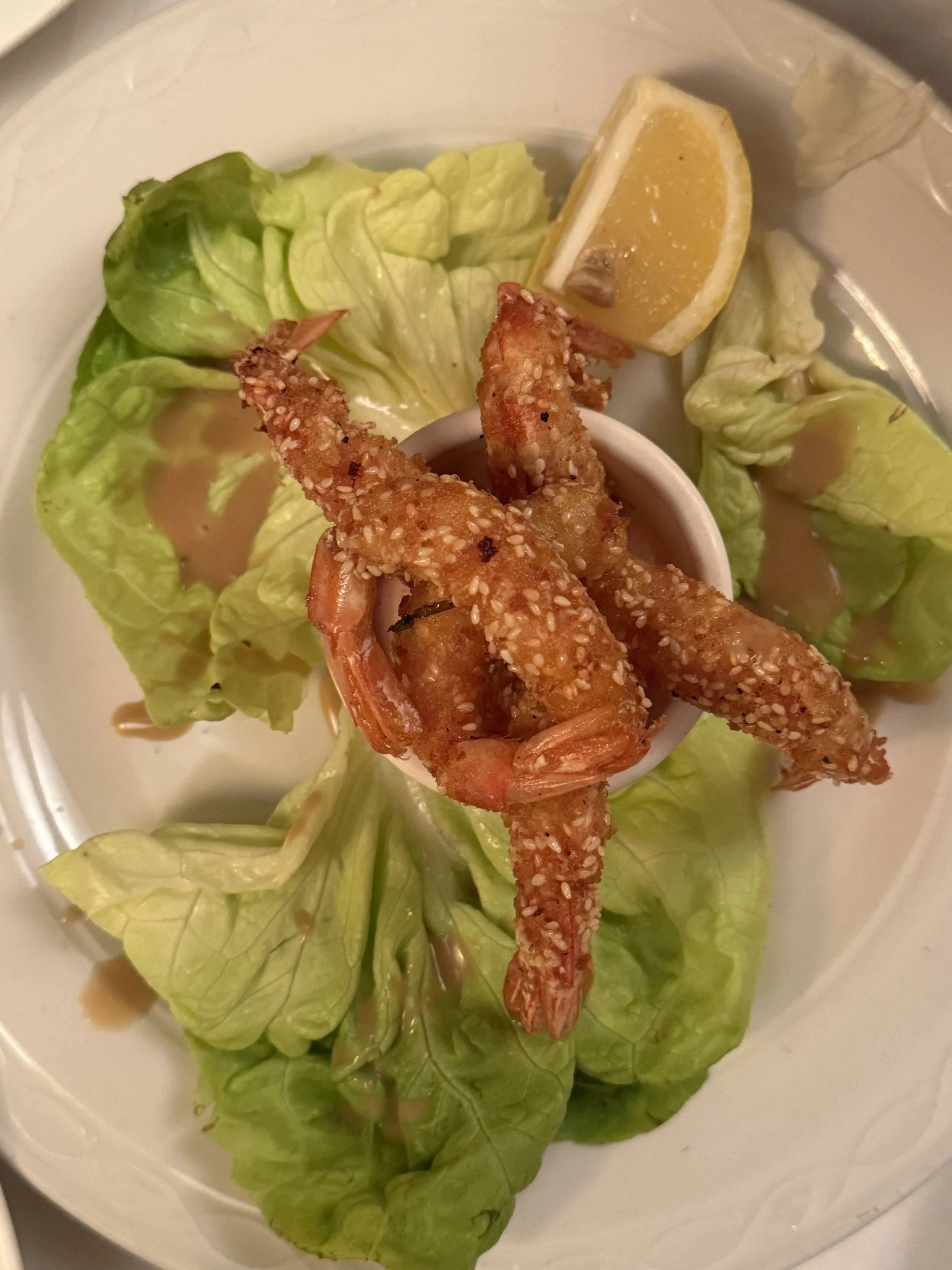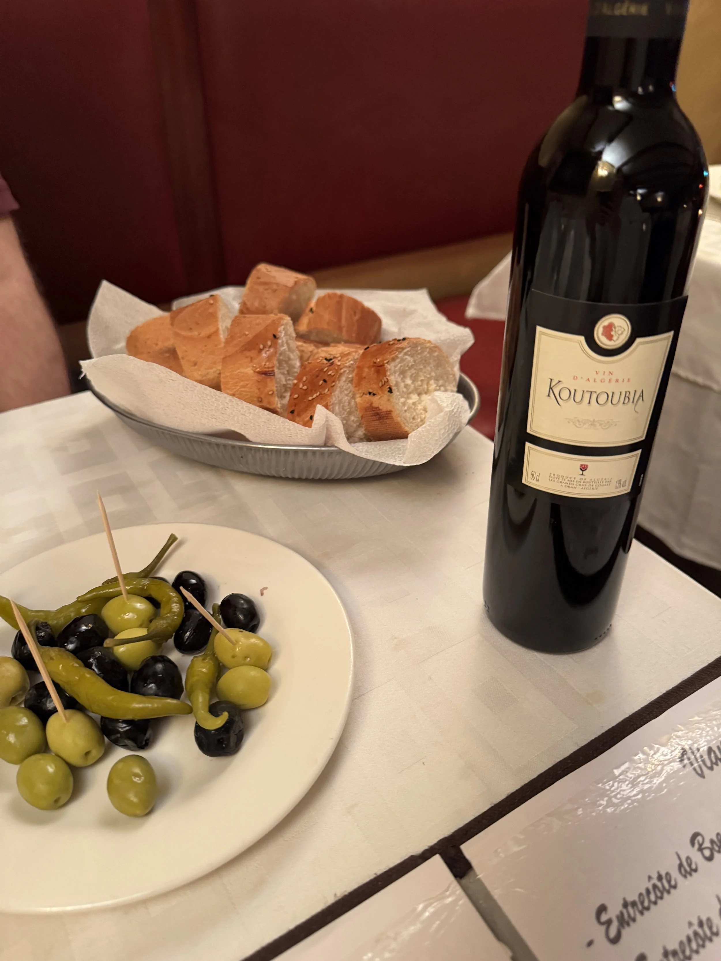 Dinner was discovered through some Google searches and we landed on a quaint local favorite; Restaurant La Bearnais. We arrived at 7pm to find we were the first guests of the evening as most locals eat dinner around 9-10pm. This was also one of the only restaurants that served alcohol so we ordered a bottle of Algerian wine and tucked into a starter of sesame shrimp. Our mains were the fish for me and a steak for Curtis. Everything was excellent!